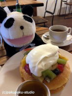 (ラインベック)パンケーキの名店です♪ お!クリームがいっぱい♪ これはうまそう♪ 満足、満足!