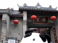 私にも知恵をください…武候祠でパンダ(タヌキ?)見つけた 錦里(きんり)昔の街並み(再現)です 竹のトンネルを通ります。