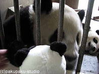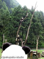 これから入ります! パンダのなる木です!! 鉄格子越しにご対面〜〜! みんなお昼寝しています。 ちゅっ!ちゅっ! ちゅ〜♪