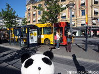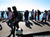 会いにいきました26番のバスに乗ります。 観光客のみなさんでいっぱいです〜 あっ! …足先がお魚なんですね なんだか、さびしそうです…