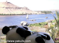 | これがラムセス2世。大きいな〜 | ナイル川に帆掛け舟 | 泳ぎ疲れてお昼寝中zzz | ここにいるよん♪ |