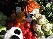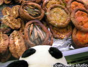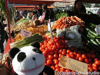 広島の電車みたい♪朝からマーケットはにぎやかです! おやさいとってもおいしそう♪ おさかなが入ったパンだぁ…