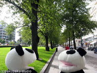 (え、もう?)あめはやみましたね… パンダ子さん、こっちですよ