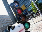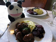 じゃがいもとビーツの付け合せがたっぷり♪あ、自転車! レッツゴ〜♪ 自転車用の信号があるね!
