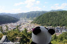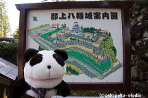 郡上八幡城にやってきました 小高い山の上に建っています 白壁のきれいなお城です 眺めも最高です お城に登ってみましょう あれ? 郡上八幡の街が良く見えます 山内一豊の奥さん「千代」の語録が