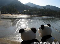 ようこそ宮島へ! おお〜これが世界遺産の! まってぇ〜 潮が引いてきました!