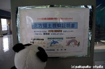 納沙布岬までやってきました! 北方館をのぞいてみましょう ほう、エゾシカくんです あ、ヒグマくん! 僕も署名しよう♪ 平和の鐘・・・届け北方領土へ タワーも霧でおおわれています うむ〜最東端
