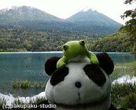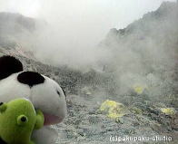 カヌーに乗って探検中硫黄山 怪獣がでるぞー