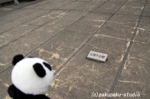 大きなお城の跡です敷地面積はかなり広いです ほほう!地面には何の間か表示があります 浅野内匠頭や大石内臓助ら