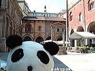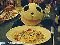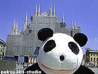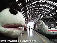 とうとうパンダさんがイタリアに着きました!(緊張;) ミラノの中央駅です(でかい!) 初・パンダさんのイタリアンカフェ!カップチーノです。クリームがはあと型♪ これが本場のパスタ♪