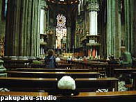 ミラノの大聖堂ドゥオーモです。(ファサード修復中。残念)中に入ります。(お静かに!) ゴシック聖堂のステンドグラス なまんだぶぅ・・・(違う)
