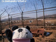 休憩です。例の38度線ですね。警備ご苦労さまです! ぼくを捕まえないでね〜! 鉄柵です!向こうはかの国・・・ 弾丸列車・・。凄すぎです。。