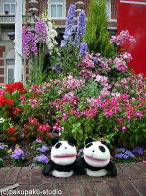 体験中のぱんちゃん。ホテル・ヨーロッパ前で春の花々に