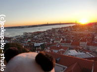 「リスボンブルー」の空!(ここらでちょっとビールを…) 夕方。サン・ジョルジェ城からのパノラマ。