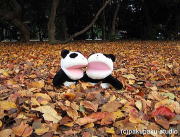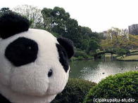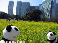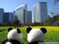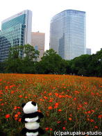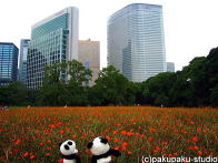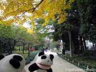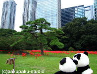 パンダ子さんお手をどうぞ♪ すっかり秋ですわ♪ まあ高いビルですのね… 登ってみましょう!ええ! 美しいですわ♪