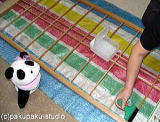 お手伝いしま〜す! のり♪ ぺたぺた できた(穴を開けるのも私)♪
