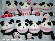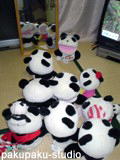 サラ、フランソワ、えりちゃん、ジョバンニ。パンテル(マフラー)、パセリ(パジャマ)、トン、パンジー(マフラー) 新潟に里子に出したぱんだ