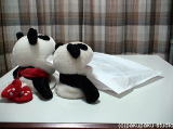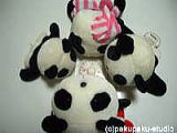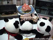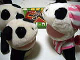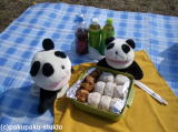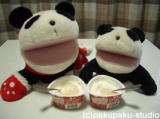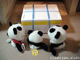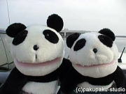 にょっきさんにかわいがられてのびのび過ごしているパンダたちです