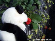 イチゴ狩りに連れて来てもらったでしゅ♪ イチゴがいっぱい生ってるでしゅね〜♪ もぐもぐ…美味しいでしゅ〜♪
