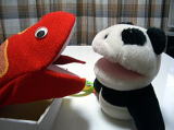 とーちゃんがお土産を買ってきました! わ〜い!カニさんだ〜♪ おいしそ〜♪早く食べよ〜♪