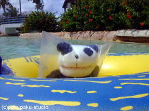 まんまと逃げおおせたのでした…へへへ・・・ しばらく水の中に隠れていよう♪ ぶくぶくぶく・・・・ Gパンダ、旅費はまだ大丈夫か?